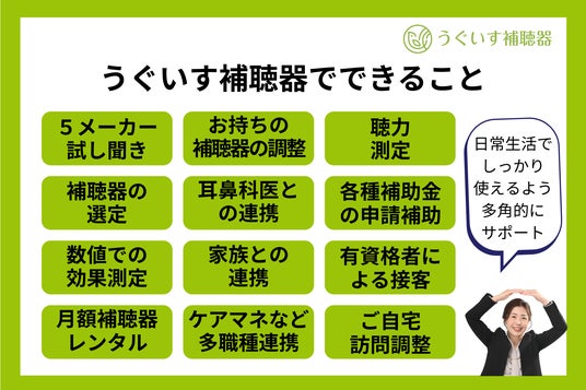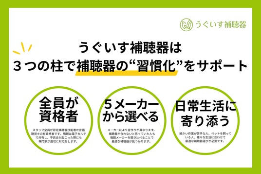 当社が運営する「うぐいす補聴器(以下当店)」では、2020年の開業当初から「補聴器を販売するだけでなく、人生を楽しむためのツールとして活用できるよう支援する」ということを理念に、"補聴器の習慣化"を実施してきました。「補聴器を購入したのに、よく聞こえない」「お店ではよく聞こえていたと思ったのに、家に帰るとあまり良くない」といったお悩みを解消するため、当社は様々な対応策で聞こえの問題に対処しております。