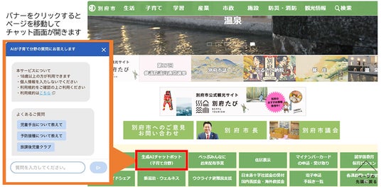 本チャットボットは、24時間365日、いつでも質問にAIが対話形式で自動回答します。従来のシナリオ型チャットボットとは異なり、自然な言葉での質問に対して、別府市の独自のデータベースから情報を抽出し、生成AIが文脈を理解した上で最適な回答を生成します。これにより、市民の皆様は時間や場所を問わず、必要な情報を迅速かつ手軽に入手することが可能となります。