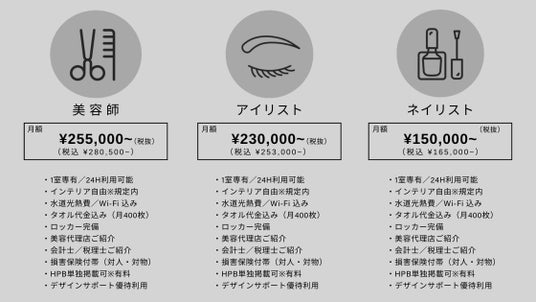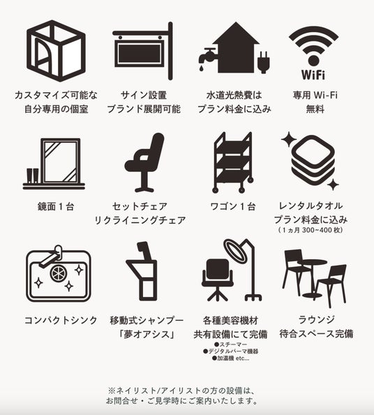個人で占有できる完全個室空間を利用し、『独立したフリーランス美容師のブランド化(独自のサロンブランド)』をあらゆる形で支援し、施設の提供だけではなく、ライフスタイルや働き方の変化等、多様性の拡大を想定した「ニューノーマル時代の顧客体験」をご提供中です。