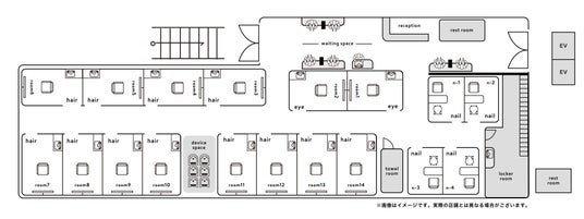 ・個室数:美容師/アイリスト専用個室:14室 ネイリスト専用個室 4室 計18室