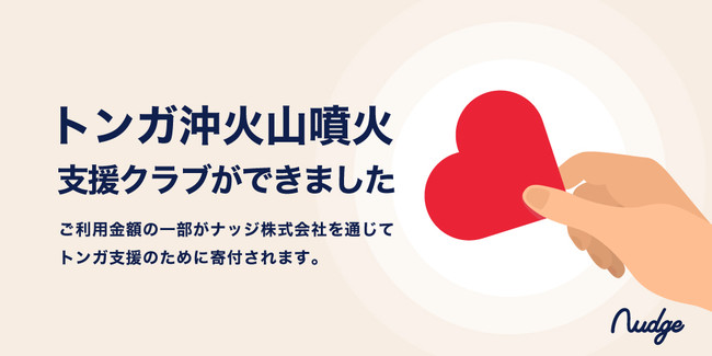 日本におけるチャレンジャーバンクを目指すナッジ株式会社(本社:東京都千代田区、代表取締役社長:沖田 貴史、以下「ナッジ」)は、次世代型クレジットカード「Nudge(ナッジ)」において、1月21日から「トンガ沖火山噴火支援」クラブの受付を開始致しました。