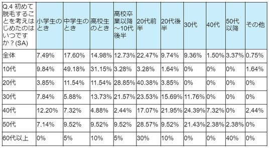 Q.4 初めて脱毛することを考えはじめたのはいつですか?