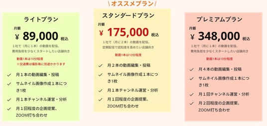 費用対効果を一番に考える反面、YouTube運営は直ぐに結果は出ません。継続した動画発信(データー分析では3カ月~)で確実に成果は表れてきます。それを踏まえ以下の価格プランをご用意しています。