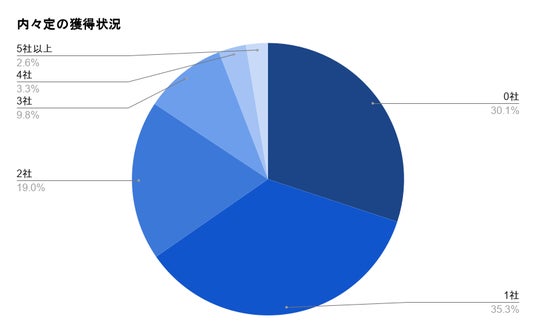 - 内々定の未獲得は約30%。一方で、2社以上の獲得は34.6%
