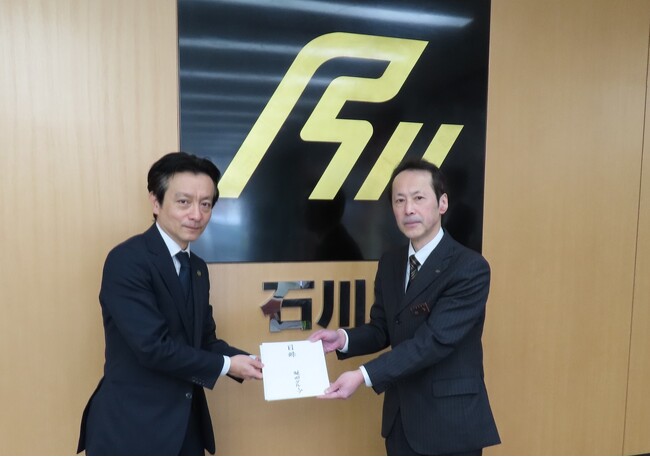 遊技事業を中心に総合エンターテイメント事業を展開する株式会社 延田エンタープライズ(本社:大阪市中央区、代表取締役社長:延田尚弘、URL/https://www.nobuta123.co.jp/)は被災された皆さまの救援や被災地の復旧に役立てていただくため、延田グループ事業所にて募金を実施、延田グループからの寄付金を合わせ、合計350万円を石川県大阪事務所へ寄付いたしました。