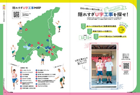 ◆ 隠れすぎU字工事を探せ:今回の特集記事でご紹介した隠れすぎ遺産や市の施設など市内17カ所に、お笑いコンビU字工事さんのオリジナルAR動画を視聴可能なQRコードを配置いたします(視聴は本年12月31日まで)。U字工事さんには特集記事へのご出演だけでなく、これまでにご自身のYouTubeチャンネルで「隠れすぎ遺産」の紹介にご協力をいただいています。