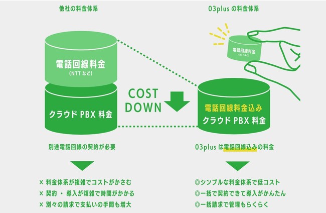 【他社クラウドPBXサービスと03plusの比較イメージ】