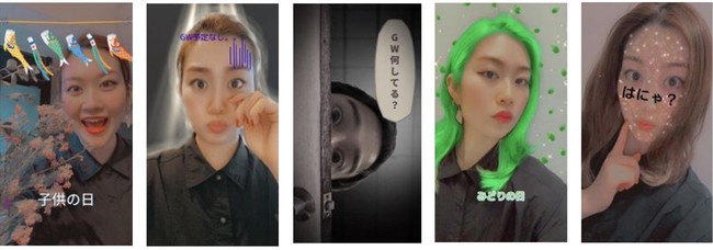 レンズはSnapchatユーザーのコミュニティを刺激し、親友たちとの結びつきを強くし、カメラを通して無限の可能性を発見してくれます。 長年、Snap社は最も革新的なテクノロジーをAR技術に応用してきました。多くの人が未来的だと感じるコンセプトを、弊社の活気あふれるARエキスパートをはじめ、一般のレンズクリエイターたちが構築し、実際に何百万人ものSnapchatユーザーたちに毎日使用されています。今回発表されたレンズを用いて是非、ゴールデンウィークの思い出を友達とシェアしてください。