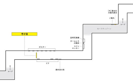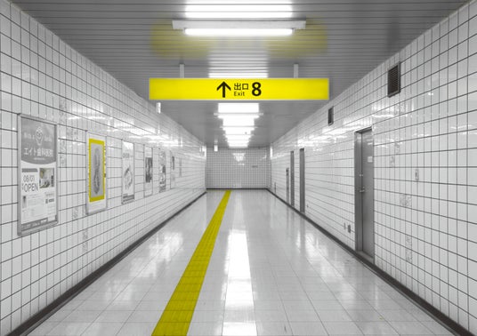 地下鉄の改札を出て地上へと向かうため地下通路を歩いていく。天井には【↑出口8】の看板。しかしいつまでも出口に辿り着くことができない。何度もすれ違う同じ男に違和感を覚え、やがて自分が同じ通路を繰り返し歩いていることに気付く。地下通路の壁には謎めいた【ご案内】が貼られている。