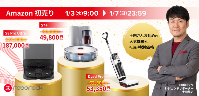 ロボット掃除機と掃除機の「Roborock」を製造・開発するBeijing Roborock Technology Co.,Ltd.(本社:中国北京、CEO:Richard Chang)は、2024年1月3日(水)9:00から1月7日(日)23:59までAmazon.co.jpで開催される「Amazon初売り」に参加し、掃除機のビッグセールを行います。