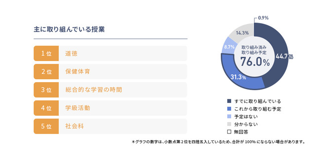 ・LGBTQ・性の多様性について授業で取り組んでいる、取り組む予定の学校は76.0%。