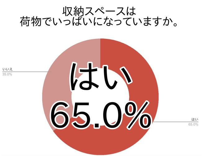 収納スペースが荷物でいっぱいになっていると答えた回答者は半数を大幅に超える65.0%でした。