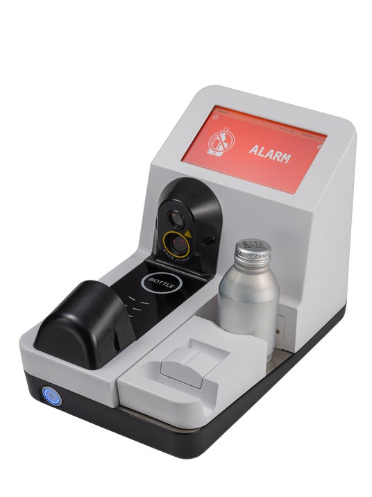- 光学式センサー、接触式センサーを用いて容器を未開封のまま検査が可能