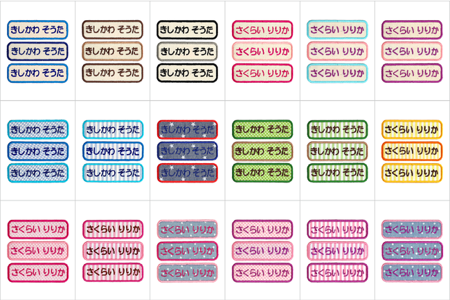 当店人気No.1商品であるお名前シールの人気デザインをセレクトしたイラスト入りから、シンプルなワッペンまで様々なバリエーションをご用意。デザイナーが生地・糸の色までこだわって企画しました。