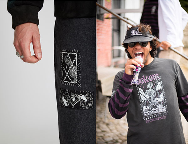 VADERETRO(バダレトロ)は、Alexandre DebelloirとJulian Santusによって設立されたイラストレーション、グラフィックデザイン、工芸印刷のスタジオです。2015年以降、ロックとメタルカルチャーへの共通の情熱から、彼らは多くのバンド(Gojira、Kvelertak、Kadavar)やフェスティバル(Hellfest、Motocultor)とコラボレーションするようになりました。また、出版(Gallimard, Hachette)やブランディング(Volcom)など、他の分野にもその焦点を広げることが出来ました。彼らの作品は、中世のイメージ、ダークロマン主義、植物学、そしてトラディショナルタトゥーからインスピレーションを受けています。また、スタジオで手作りの版画を制作し、オリジナルの金属彫刻をしている。今回のVADERETROコレクションは2弾に分かれており今回が最初の期待すべき第1弾のリリースとなります。