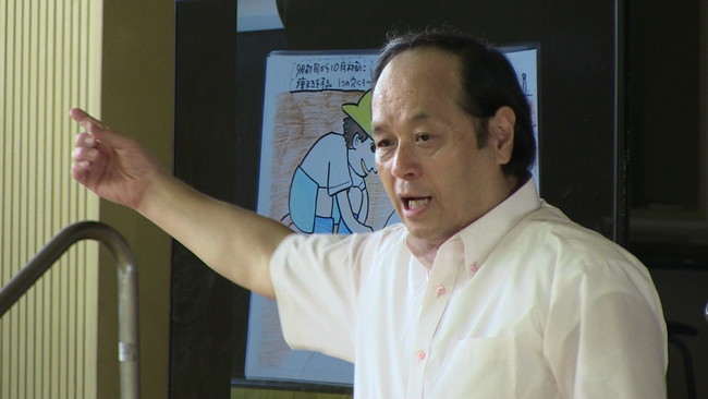 小学校で出前授業を行う「東海道品川宿なすびの花」代表の大塚好雄さん