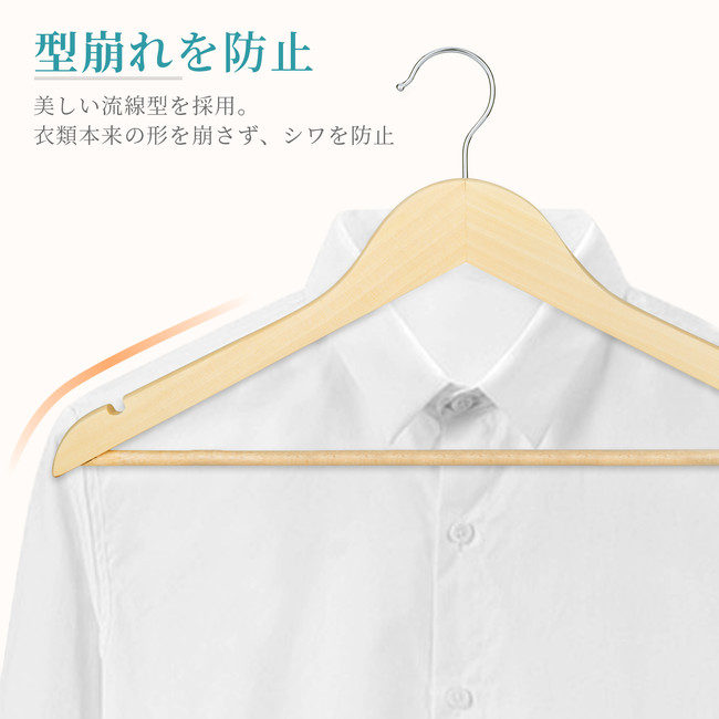 肩の曲線を意識したフォルムが、衣類本来の様子を守り、型崩れを防止。