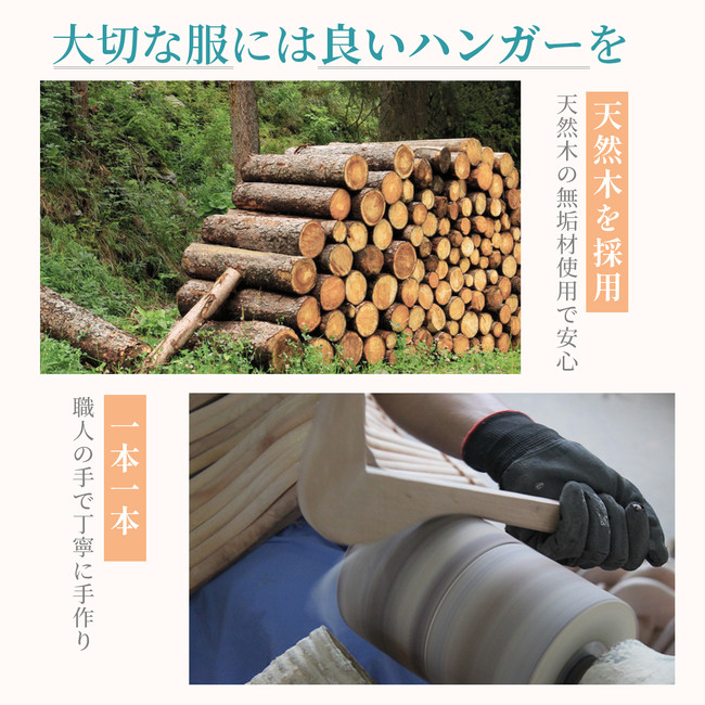 一本一本丁寧に熟練の職人が、心を込めて製造している木製ハンガーです。