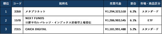■第2四半期(4月~ 6月) 第1位 5月22日(木)夜間の売買代金:502億円