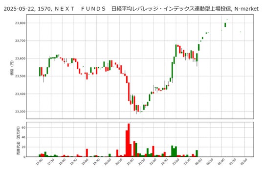 2025年5月22日の夜間取引の動きを総じて言えば、ビットコインに代表される暗号資産価格が最高値を更新する中で、関連株が乱高下した取引と言えます。