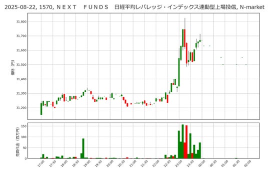 2025年8月22日も5月同様、暗号資産関連が主役でした。ただ、この時期、ビットコイン価格が強かった訳ではありません。暗号資産関連としての存在感はメタプラネット(3350)が圧倒的ですが、この日はやはり暗号資産関連であるCAICA(2315)と売買代金に大差はありませんでした。夜間取引ではこの日、CAICAが先行して動き、メタプラネットはその動きに続いた形です。