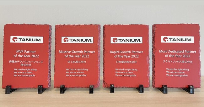 年次で発表されるTanium Partner Awardは、2022年度(2022年2月~2023年1月)において、最も素晴らしい実績を残し、国内のお客様に価値の高いサービスを提供することで、厚い信頼を獲得したパートナー企業を表彰するアワードです。