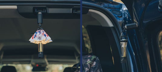 自在に使えるマグネットフック - テントやタープの好きな位置に設置し、キャンプギアや小物を吊るせる。
