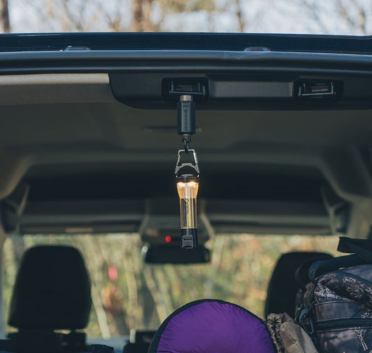 収納式フック - シリコンカバーをスライドさせるだけで、フックが簡単に使用可能。ランタンハンガー&ガイロープ対応:小型ランタンハンガーやガイロープに取り付けられ、マグネット部分にはワンタッチでLEDランタンを装着できます。