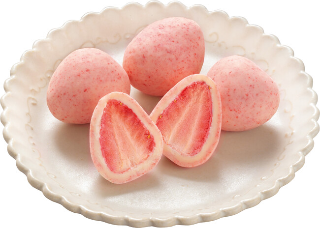 【内容】まるごと一粒いちごをホワイト・ストロベリー2種類のチョコレートでコーティングし贅沢気分を味わえる商品です。