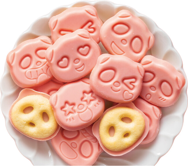 【内容】かわいいパンダの様々な表情が楽しめるチョコビスケット。甘みと酸味のバランスが良いフレッシュないちごチョコの味わいです。
