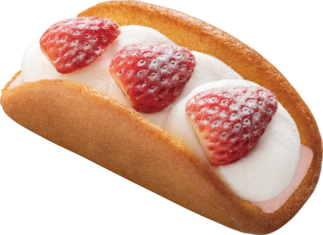 【内容】ふわふわでくちどけの良い生地に、北海道生クリームをブレンドしたホイップクリームといちごカスタードクリームを包み、フレッシュいちごをトッピングしました。手軽に本格的なショートケーキのような味わいをお楽しみいただけます。