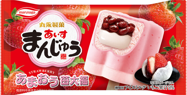 【内容】あまおうピューレを配合したいちごアイスに、北海道産小豆あん、もちを充填し、いちごフリーズドライ入りいちごチョコでコーティングしました。