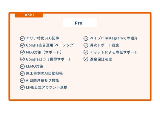本プランは、紹介や受注ごとに手数料がかかる従来の構造から離れ、会社の“集客力”そのものを育てる新しい仕組みです。