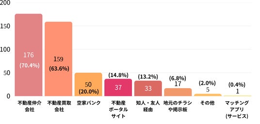 その結果、「不動産仲介会社(仲介)」を利用・検討する回答が70.4%と最も多く、「不動産買取会社」(63.6%)が続きました。また「空き家バンク」(20.0%)を検討する層も一定数存在し、従来の売却チャネルが根強い人気を保っていることがうかがえます。一方で、マッチングアプリ・サービス(0.4%)など、新興の手法はまだ十分に浸透していない状況です。