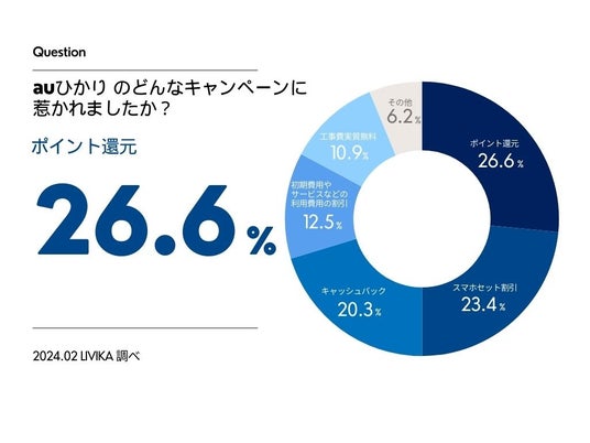 auひかりのどんなキャンペーンに惹かれたかについて、26.6%の方が「ポイントが還元されること」と回答しました。