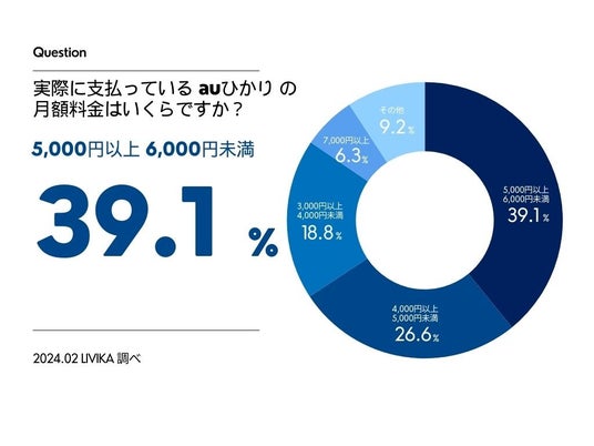 ・auひかりの月額料金 最多は「5,000円以上6,000円未満」