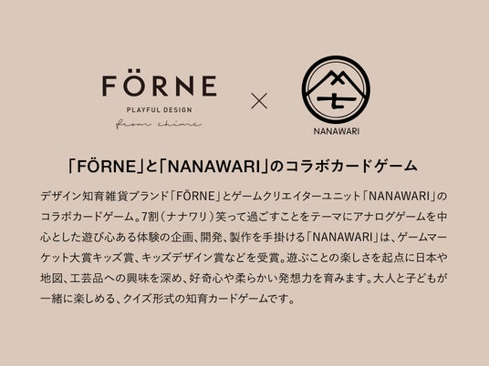 デザイン知育雑貨ブランド「FÖRNE(フォルネ)」は、ゲームクリエイターユニット「NANAWARI」とコラボレーションした知育カードゲーム「ココどこ?にっぽん!」を1月27日(月)に発売しました。