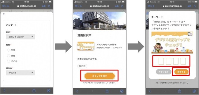 (4)そのスポットのキーワードを解答して、スタンプをGET!キーワードは、「港南区デジタル観光マップ」のおすすめコメントにヒントがあります。