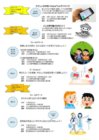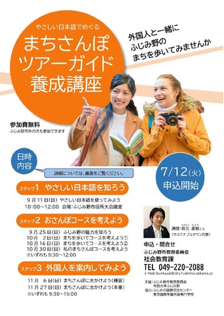 在住外国人と日本人が一緒に散歩をしながら、まちの魅力を見つけるツアーのガイド養成講座(全7回)を9月11日(日)に開講します。分かりやすく(易しい)、相手のことを思いやる(優しい)気持ちでという2つの「やさしい」意味を持つやさしい日本語が、参加者の共通語です。