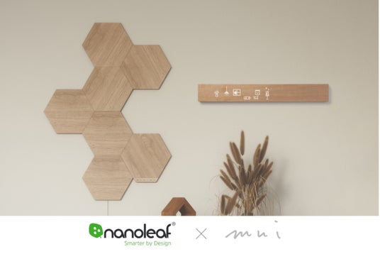 生活へ自然に溶け込みウェルビーイングな家時間をもたらすインターフェースとして注目を集めているmui Labの「mui ボード」と、Nanoleafの中でもインテリア層からの支持が加速している木製パネルの「Elementsシリーズ」がセットでお得に購入できます。