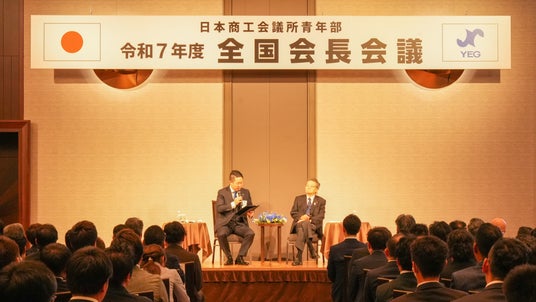日本商工会議所青年部(日本YEG)は4月25日、都内で全国会長会議を開催。全国416単会の会長が一堂に会する中、小野知一郎会長と日本商工会議所・小林健会頭の対談を実施した。