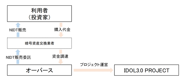 オーバースは、一般の利用者(投資家)に対するNIDTの販売を通じて事業資金を調達(IEO)しましたが、『IDOL3.0 PROJECT』はその調達資金によりプロジェクトが運営されます。