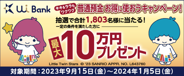 【抽選で合計1,803名様に現金で最大10万円をプレゼント!】キャンペーン期間:2023年9月15日(金)~2024年1月5日(金)