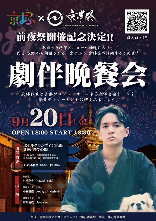 TVアニメ『僕のヒーローアカデミア』や『ハイキュー!!』等の音楽を手がける劇伴作曲家 林ゆうきと、音楽プロデューサーの小林健樹さん、有馬由衣さんが劇伴音楽について語らう『劇伴晩餐会』が、2024年9月20日(金) ホテルグランヴィア京都にて開催することが決定しました。