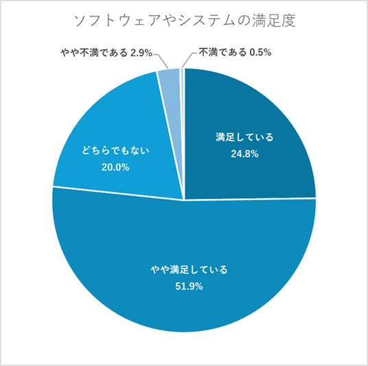 導入しているソフトウェアやシステムに関しての満足度については以下のようになっています。