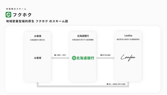 地域密着型福利厚生サービスを提供する株式会社Leafea(本社:東京都中央区、代表取締役:森田 渉、以下リーフィ)は、北海道銀行(本店:北海道札幌市、代表取締役頭取:兼間 祐二)とビジネスマッチング契約を締結したことをお知らせします。
