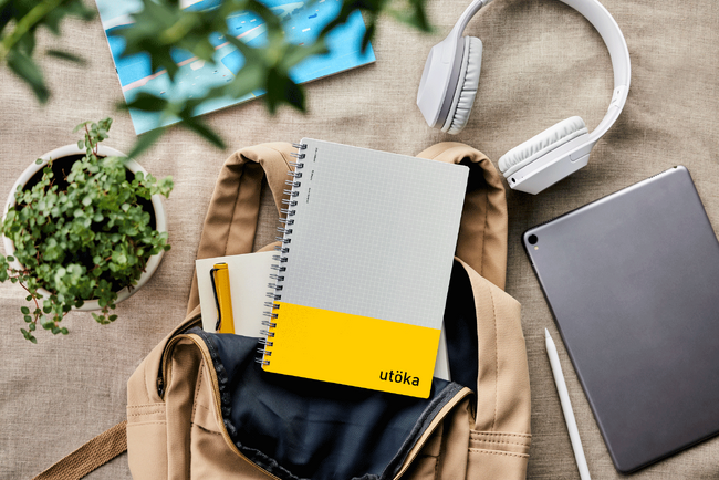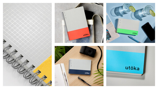 utokaはスウェーデン語で「広げる、拡大、増やす」という意味の言葉です。使い方も使う場所も選ばないノートなので、あなた次第でワーク&ライフがもっと豊かに便利に広がることをイメージしています。