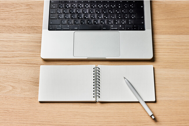 PCの手前に置いて情報をメモしたり、ノートで構成を練ってからデジタルにアウトプットするなど、デスクの上でデジタル機器と合わせて使いやすいサイズ展開です。