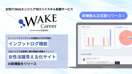 bgrass株式会社(本社:東京都渋谷区 代表取締役:咸 多栄)は、「WAKE Career」にインプットログ機能、女性活躍見える化サイトを追加し、これを正式版のリリースとしたことをお知らせします。