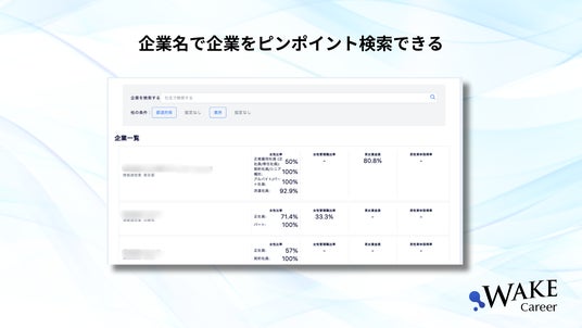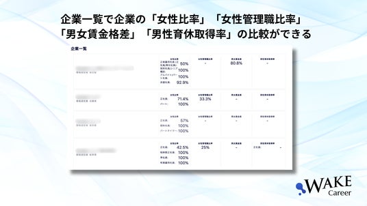 そこで、私たちはグローバルスタンダードなジェンダースコアカードWEPsをもとにした「サステナブル職場診断」とともに、しっかり情報開示されている企業のデータも見せていくことで、「WAKE Career」での唯一の価値を提供していきたいと考えています。